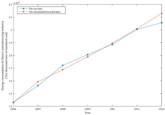 The energy consumption of the manufacturing industry is affected by many uncertain factors, such as industry structure, technology level, energy price, economic scale and national policy [13] and has the typical characteristic of uncertainty, that is ‘grey cause’ [14]. An econometric regression model (ERM) is an important and frequently-used prediction model, which operates under the premise of a large sample of data (not less than 30), and mainly by studying data statistical laws to find the functional relation among variables. When the size of sample data is small, or sometimes even with a large quantity of data, there might not be any statistical laws to be found, in these cases, an ERM cannot be used to forecast [15]. The Markov prediction model is effective in the prediction of the state of a process, but it is not suitable for medium and long-term predictions for a system [16]. The neural network model implements the mapping function from input to output, but ‘over fitting’ often results in poor prediction performance [17]. Since the grey prediction model has the advantage of single variable modelling, we will use it to solve the issue of the modelling and prediction of the energy consumption of China’s manufacturing industry [18,19,20].