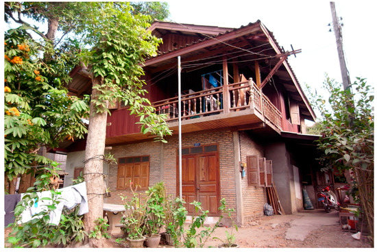 - Vonvilay, X.; Kang, Y.; Choi, J. The impact factors causing transformation of Lao traditional house: Case study of Luangprabang, Lao PDR. J. Korean Hous. Assoc. 2015, 26, 1–12. [Google Scholar] [CrossRef]