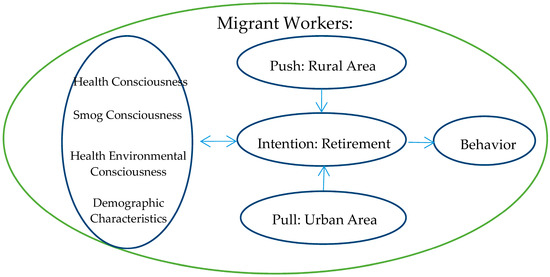 While the lure of higher incomes and better job opportunities are the main pulling factors attracting migrants to urban areas, retirees might be more concerned with the urban area’s more expensive living conditions and be less attracted to the better work opportunities as health and age limit their ability to take advantage of these opportunities. In addition, while migrant workers tend to be a relatively healthy population focused on economic opportunities, retirees tend to be more concerned about medical issues (both their personal health and the availability of medical care) and the quality of the environment. Migrant workers who have higher incomes, more opportunities, and higher educational levels are likely to be pulled to urban amenities, while those who have supportive medical infrastructures (such as insurance), property or elderly relatives in the rural areas are likely to be pushed to the rural areas. The theoretical structure is outlined in Figure 1.