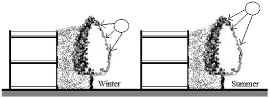 In winter, the plant shaded wall creates a buffer against the wind, which reduces the energy loss associated with indoor heating. Therefore, using plants to shade walls have year round thermal advantages, with economic and energy-saving benefits [17]. In winter, under a Nordic Climate, the green roofs held the moisture content below the critical volume (15–20%), and can thus improve roof insulation during freezing [18]. In the Oceanic climate during the winters the green facade showed moderate reduction of heat losses, and its energy balance was found to be 20% higher than an orthodox facade [19]