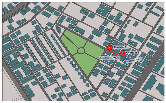 The Plan of Abu Shagara indicating the two study sites, corridor A and corridor B.