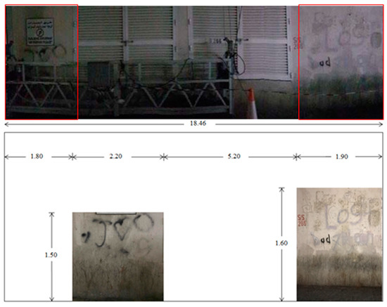Image illustrating the width and height in meters of the vandalised wall in corridor A.
