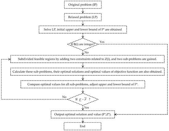 This subsection presents the procedure of branch and bound approach embedded in EOA problem for SDSC according to Zhan et al. [43] and Goerigk et al. [44]. It is depicted in Figure 3. The following clarifies specific steps.