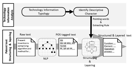 The sentences in the title, summary, and claims are converted into a tagged form of words in parts of speech and phrases through the NLP process. The sentences described in the title, summary, and claims are classified and structured according to the types of technological information given by the pointing words defined through the patent analysis and the existing prior studies. The technological information is then layered according to depth, using the extracting rule defined for each type of technological information.