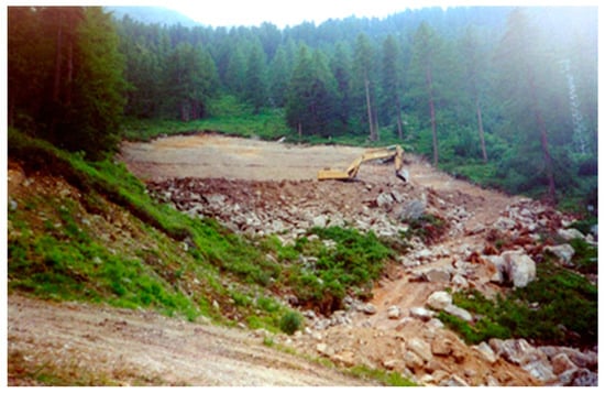 In Europe, the treeline oscillates around 2000 m above sea level. Surface corrections below that limit mainly affect forest soils (Figure 1), while at higher elevations geomorphological features such as rock glaciers or patterned ground areas are disturbed, although the disturbance of soil properties and alpine vegetation also have to be considered (Figure 2). Machine-grading is a common practice at all elevations in the Alps and, in comparison to clearing is more damaging to multiple indicators of ecosystem functions [16]. The impact on soil properties observed in graded ski runs may be especially long-lasting in high-elevation ecosystems where soil development tends to be slower. Nevertheless, if best practices for soil management are carried out, the ski-runs can be successfully used for grazing during the summer months.