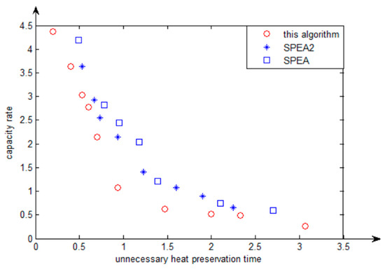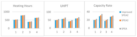 Taking the shortest heating hours as the selection strategy, the final optimal solutions can be selected from the three Pareto optimization solutions sets, respectively. Then, three solutions are compared in Table 4 (on the basis of the same parameters).