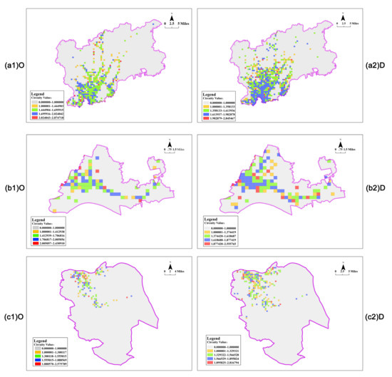 4.1.2. Different Spatial and Intensive Distribution of Travel Circuity for O and D Points among Three Types Regions Are Presented