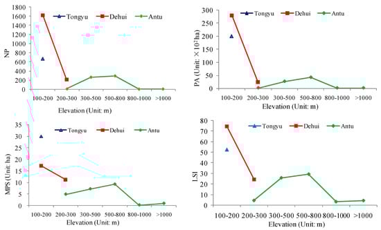 Changes of the landscape indices with elevation.