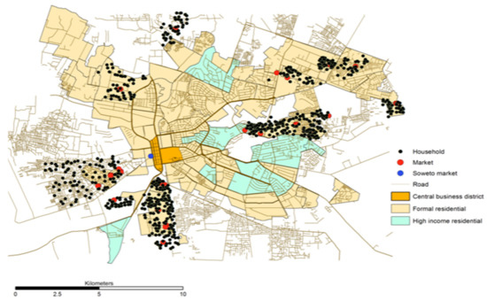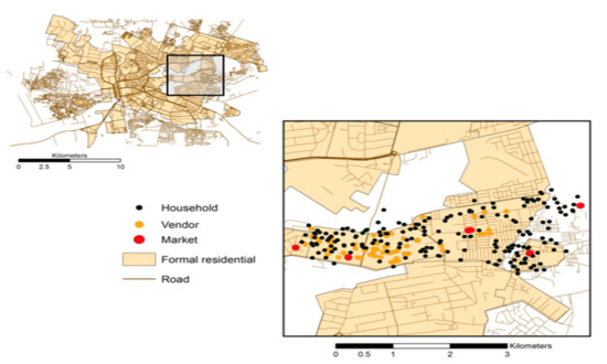 For the urban poor, the attainment of food security is made more difficult due to accessibility factors that stand as a prominent hurdle for low-income households as food purchases constitute a greater proportion of their income [29]. Battersby and Crush [30] find households in low-income residential areas, on average, spend more than 50% of their income on food. Of great importance to overcoming the difficulties that are associated with accessibility is a household’s income, and whether that income is attained through formal or informal employment. Within low-income areas, the informal economy’s employment opportunities are vital for ensuring some measure of household income. Alternatively, the informal economy also contributes to the attainment of food security through its provision of affordable food for household consumption. Haysom et al. [31] state that the informal economy is “incredibly fluid”, in that it allows for individuals to move outward from its reach as formal employment opportunities are gained, but also allows for a user’s assimilation again as needed.