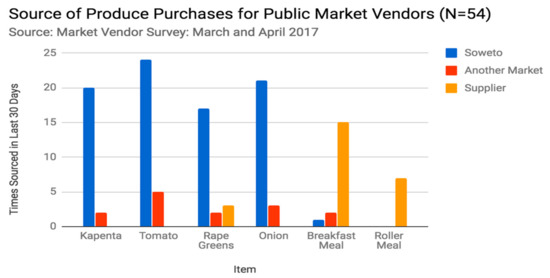 Public market vendors report purchasing most of their fresh produce for resale from Soweto Market.
