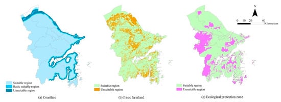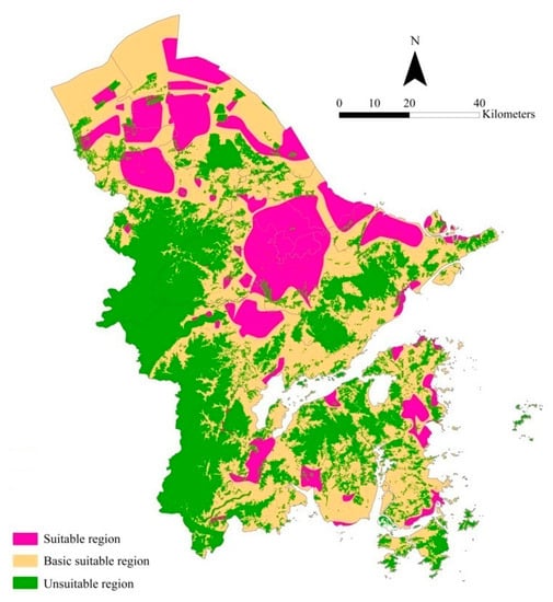 14]. According to this guideline, urban master planning must delimit three zones: “construction prohibited zone” (strictly protected areas without any urban construction), “construction control zone” (areas in which urban development should be controlled), and “suitable construction zone” (areas which are suitable for urban development). The suitable construction zone and construction control zone contribute to defining the specified areas of urban development spaces [