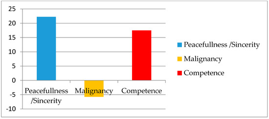 1]: Peacefulness/Sincerity, Malignacy, and Competence. These results are in line with previous research, as all dimensions are commonly identified in City Brand Personality studies all over the world: Peacefulness/Sincerity [