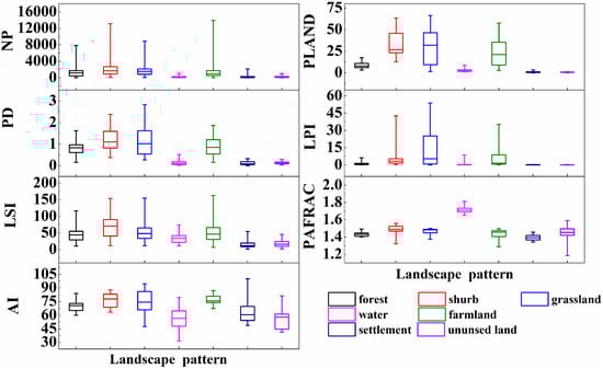 The six landscape metrics calculated at the landscape level are shown in Figure 6.