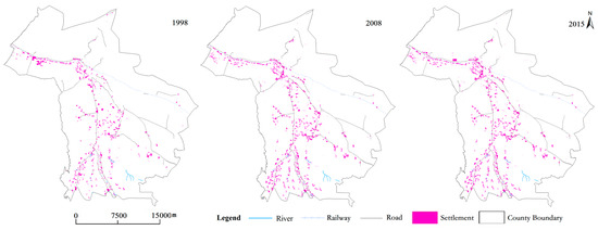 - Note that the distribution of rural settlements in Shandan County is closely related to that of cultivated land. In 1998, the conflict between rural settlement and land resources was evident. In 2008 and 2015, the conflict between rural settlement and land resources became less evident.