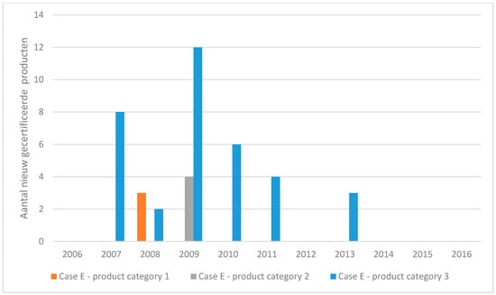 Example from quantitative data analysis: overview of products certified by case E during their membership of the Dutch Choices Foundation.