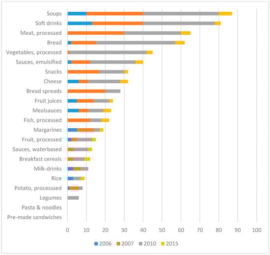 - Reeve, B.; Magnusson, R. Food reformulation and the (neo)-liberal state: New strategies for strengthening voluntary salt reduction programs in the UK and USA. Public Health 2015, 129, 351–363. [Google Scholar] [CrossRef] [PubMed]