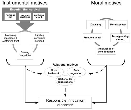 Many scholars have investigated CSR motives, and several typologies and inventories have been made [14,16,17,18,33,35,36,37,38]. However, few of these studies have linked the identified motives to actual firm behavior, focusing mostly on self-reported behavior in CSR reports and interviews [17]. What the great number of studies on CSR motives do provide is a foundation for empirically investigating this gap. In this theoretical framework, we present an overview of the CSR motives most observed by CSR scholars and reflect upon their use in innovation practices, as presented by innovation management scholars and RRI scholars. In analyzing the multiple inventories of CSR motives, it quickly became clear that, although there are differences in names and definitions, the CSR scholars have agreed that there are three types of CSR motives. In our framework, we use the following concepts to distinguish them: (1) instrumental motives; (2) moral motives; (3) relational motives.