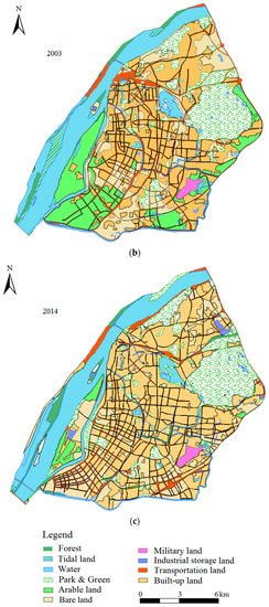 Land use map of the study area in (a) 1991; (b) 2003; and (c) 2014.