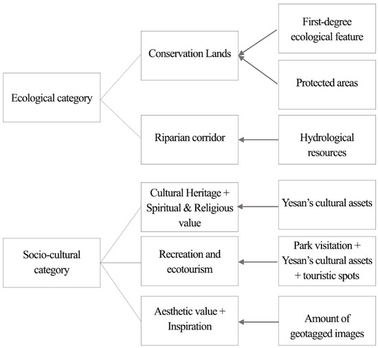 Ecological and Socio-cultural category subdivisions scheme for Yesan’s GI Network Plan and its indicators.
