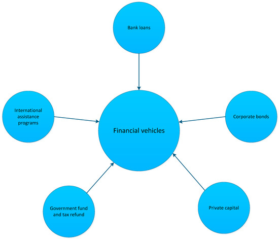 The SSTEC model is based on Table 3 and Figure 2. The first layer is that of government involvement. Local governments (e.g., SSTECAC) jointly with the central government finance SSTEC’s development by providing government funds and tax refunds. Besides, political support from the central government, indirectly influences SSTEC’s financial arrangements by adding to its credibility and reputation. TEID as the key construction party is the beneficiary of government funds and tax refunds. Meanwhile, it is responsible for raising money through various other channels. TEID is a bridge connecting the governments of China and Singapore, banks, the World Bank, and the public. For example, banks provide loans to TEID, which is one of the most common and stable sources of money for the eco-city. The World Bank provides international assistance to SSTECAC, indirectly contributing to SSTEC’s construction and adding to its status as well. The public in China and Singapore are the purchasers of corporate bonds. In addition to the players above, private parties from China and other countries (e.g., Singapore and Japan) contribute funds by investing in various companies (e.g., green transportation and energy companies).