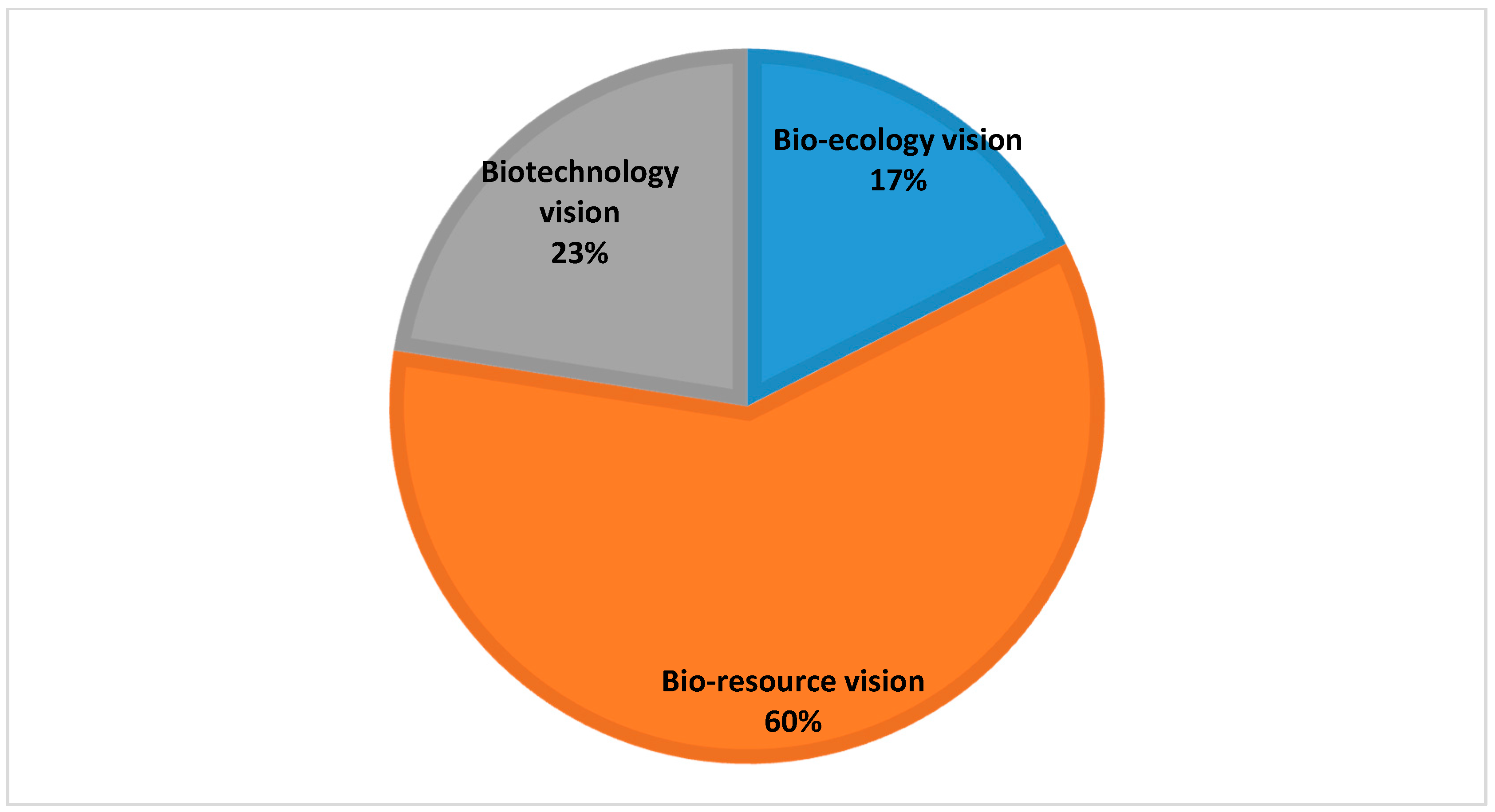 Although subject to increasing interest in the last decade, there is, thus, still little clarity in terms of what the notion of the bioeconomy implies and means. In an attempt to improve our understanding of the different perspectives on the bioeconomy, Bugge et al. [3] have distinguished between three visions of what the bioeconomy constitutes. The three visions are (1) the bio-technology vision; (2) the bio-resource vision; and (3) the bio-ecology vision.