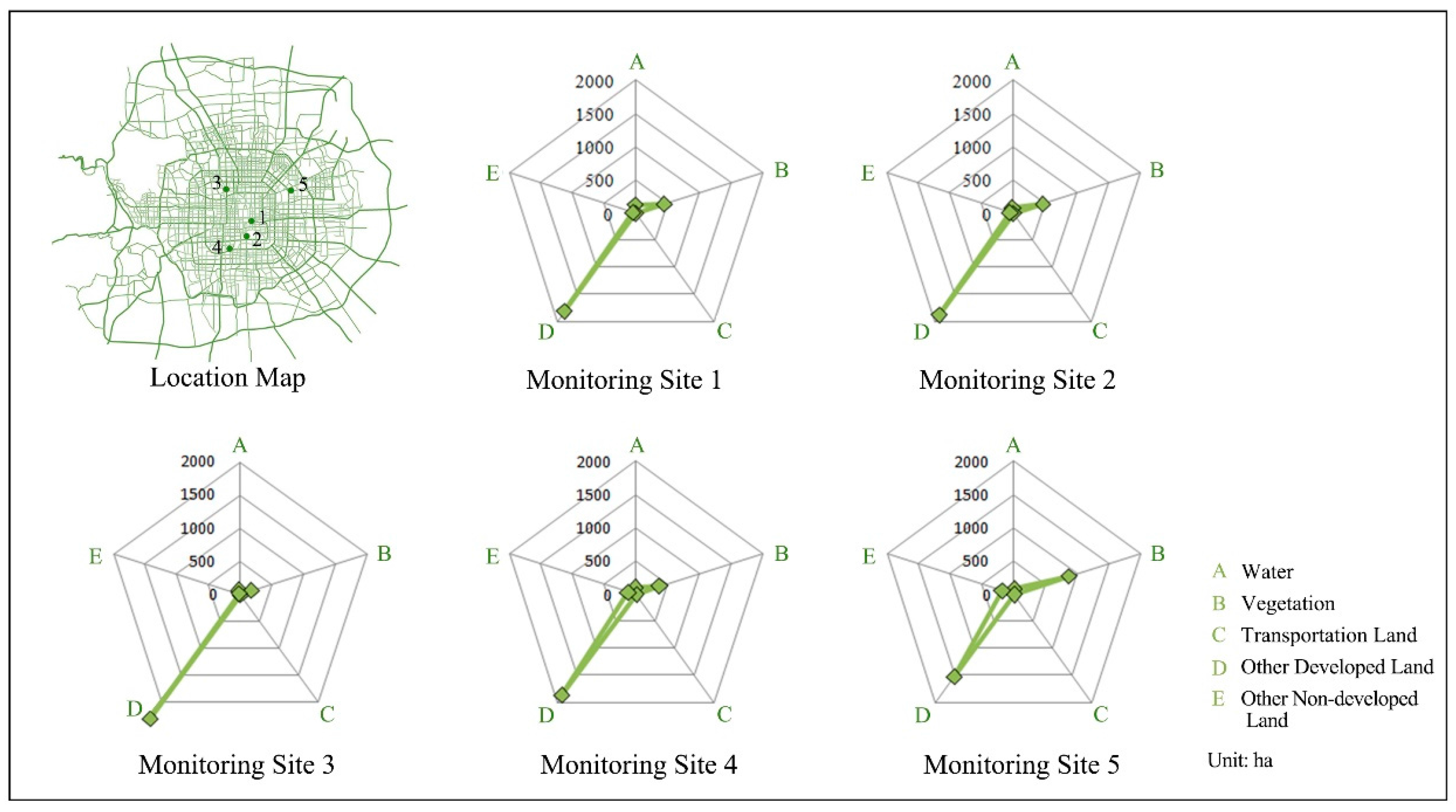 Land-use structure around the curbside monitoring sites in 2015 (Source: by Authors).