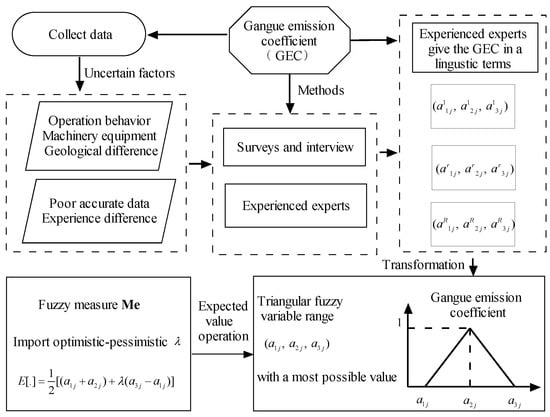 Flowchart for the expected fuzzy coal gangue emissions coefficient.