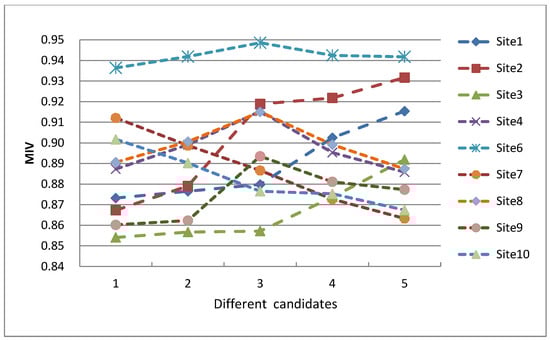 - If , let ; return to Step 5; otherwise, MIV = max MIV; go to Step 7.