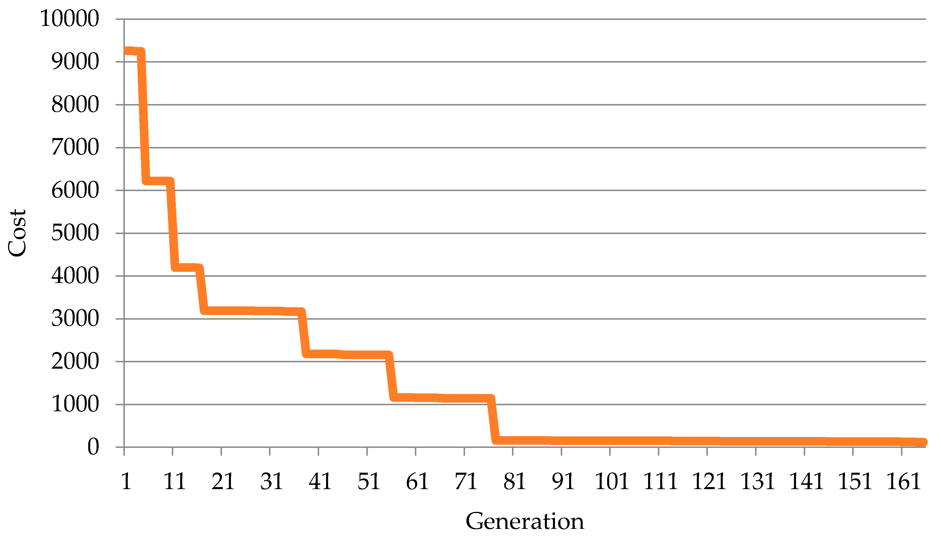 - The best individual of the population cannot obtain more improvements in 200 consecutive generations.