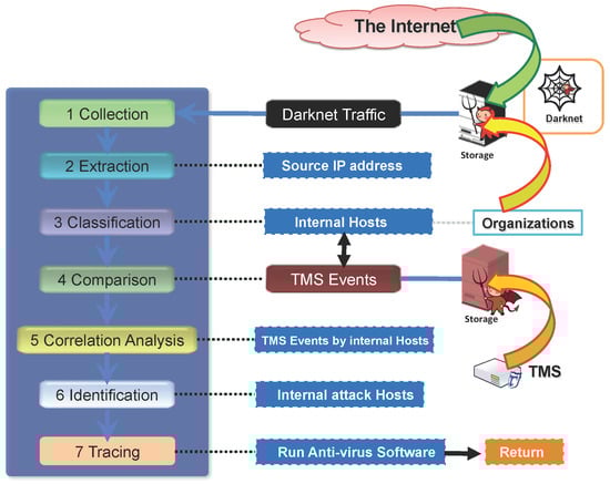 Section 3, we conducted the in-depth analysis between all of the incoming darknet traffic and IDS alerts that were raised by the dedicated IDS.