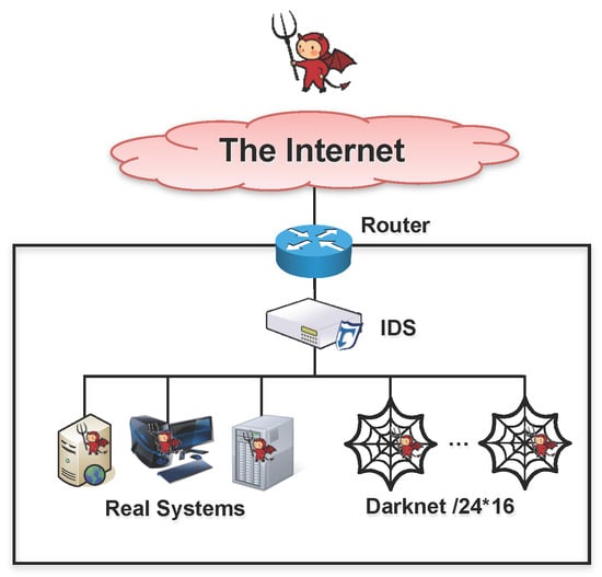 Figure 2 shows the experimental environment. In order to carry out correlation analysis between darknet traffic and IDS alerts, we prepared 16*/24 darknet (i.e., 4080 IP addresses) in Korea and collected all of the darknet traffic during six months (January 2013 to June 2013). Furthermore, we deployed a dedicated IDS in the boundary network of the 16*/24 darknet IP addresses.
