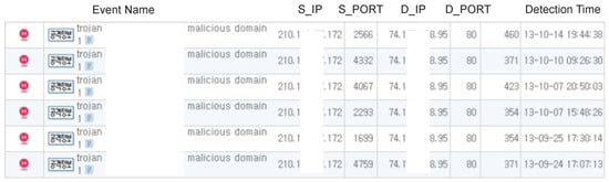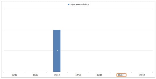 Figure 18, we can see that the 16th internal attack host raised one type of IDS alert. The name of the IDS alert is “trojan.xxxx malicious”. The 16th internal attack host raised five IDS alerts before the detection time (i.e., 17 October) of darknet traffic.