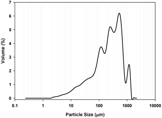 Particle size distribution of 2 mm sieved corn residue biochar produced at 500 °C.