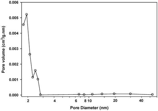 Pore size distribution of corn residue biochar produced at 500 °C.