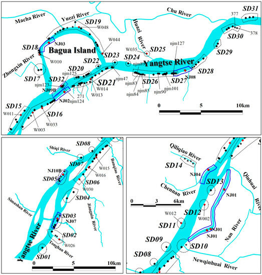 Nanjing (31°14’N–32°36’N, 118°22’E–119°14’E) lies in the Yangtze River Delta, one of China’s three major economic core areas, which is an important central city in the lower reach of the Yangtze River. Nanjing section of the Yangtze River is about 95 km long. As a lower tidal reach of the Yangtze, it is impacted by medium-intensity tides. Every day, there are two tidal peaks and two tidal troughs. Flood tides last about three hours, whereas ebb tides last about nine hours. Reverse flow exists during flood tides. There are a total of 10 county-level or above centralized drinking water sources under the jurisdiction of Nanjing, of which eight (two standby water sources) are distributed along the banks of Yangtze River, namely Jiajiang Water Source (NJ01), Yanziji Water Source (NJ02), Bagua Island Water Source (NJ03), Pukou Water Source (NJ04), Jiangning Zihui Island Water Source (NJ07), Longtan Water Source (NJ08), Bagua Island Standby Water Source (NJ09B) and Qiaolin Standby Water Source (NJ10B). Total designed withdrawal of these water sources is 1.1925 billion t/year, which supply 93.77% of the municipal water in Nanjing.