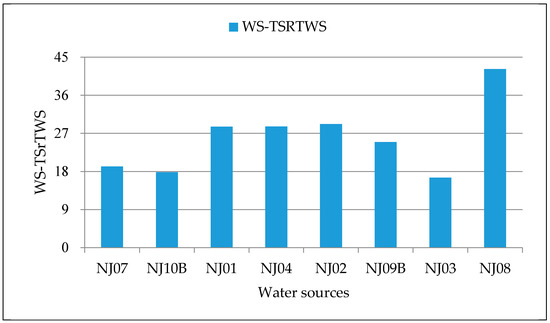Based on the above analysis, SrTWS was determined in this paper via the SrRI and the positional relationship between sub-region and water source. The positional relationship between sub-region and water source includes: distance between the sub-region and the water source in the direction of water body’s forward flow, i.e., the x directional distance; whether the sub-region and the water source were on the same shoreline, if not, distance between the two in the vertical direction of water body’s forward flow, i.e., the y directional distance; and in the case of reciprocating flow of water body, the upstream–downstream positional relationship between the sub-region and the water source.