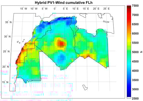 Maghreb’s hybrid PV–Wind power plant cumulative FLh map.