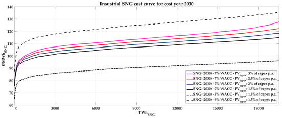 PtG (SNG) sensitivity analysis for different WACC and solar PV Opex assumptions in 2030.