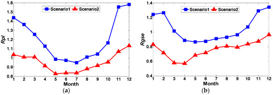 Generally, the value 1.0 can be regarded as a reference value for both of the indexes. If the index values are higher than 1.0, it means that the charging activities have negative impacts on the grid. On the contrary, if the index values are lower than 1.0, it means that the utilization of the PVCS can have positive impacts on the grid.