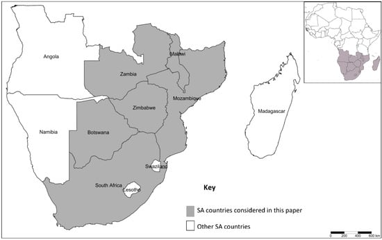 Countries in the Southern African region where DBM research has been conducted. This region appears in the high eco-climatic index of the world, where DBM persistence is year round and high [18]. * Namibia and Angola have very limited accessible research information on DBM, hence they were omitted from the map.