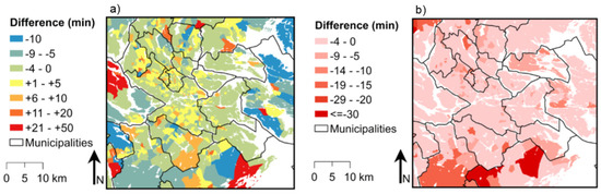 - Salonen, M.; Toivonen, T. Modelling travel time in urban networks: Comparable measures for private car and public transport. J. Transp. Geogr. 2013, 31, 143–153. [Google Scholar] [CrossRef]
