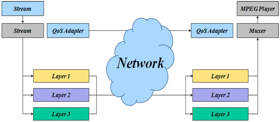 The simultaneous advances in computing and information communication technologies have enabled the processing of massive volumes of data using personal computers. Several studies analyze multimedia data services [1,2,3,4,5,6,7,8] for a variety of communication media and devices. The process of providing real-time multimedia services over mobile and broadband Internet connection has different requirements in terms of the Quality of Service (QoS) [9,10,11,12,13,14,15,16,17,18,19,20,21,22,23,24,25,26,27]. This prompts the division of multimedia data into two layers—the base layer and the enhancement layer. This modularization helps in the customization of encoding and decoding operations as per the user connection capabilities. The layers can be divided based on spatial and temporal aspects; the fundamental characteristics and scalability of these have been previously analyzed [28,29,30,31,32,33,34,35,36,37,38,39,40,41]. Here, scalability refers to the adaptability of the multimedia data service to a dynamic network environment with the aim of reducing data loss and providing best QoS.
