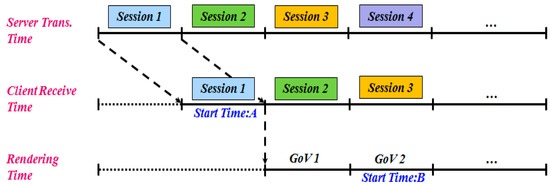 Figure 6 illustrates the session size (group) calculation at time instances A and B. The client side counts the number of packets n for the final transfer and the playback time from packet n to packet n + 1, where n >0, to determine whether the receiving operation is complete. When the time of completion is smaller, it indicates that there is still time to receive more packets. The difference value can be used to determine the time required to send more packets and the next session packet number. The steps in the session size (group) calculation algorithm are shown in Algorithm 1.