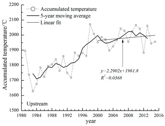 The variation of accumulated temperature during growing season in upstream area.