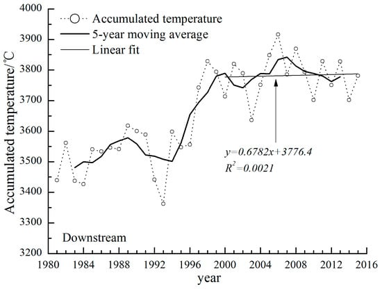 The variation of accumulated temperature during growing season in downstream area.