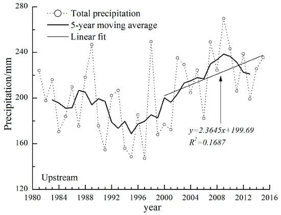 The variation of precipitation during growing season in upstream area.