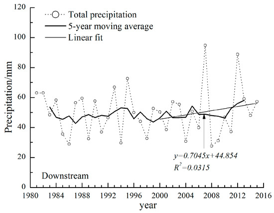 The variation of precipitation during growing season in downstream area.