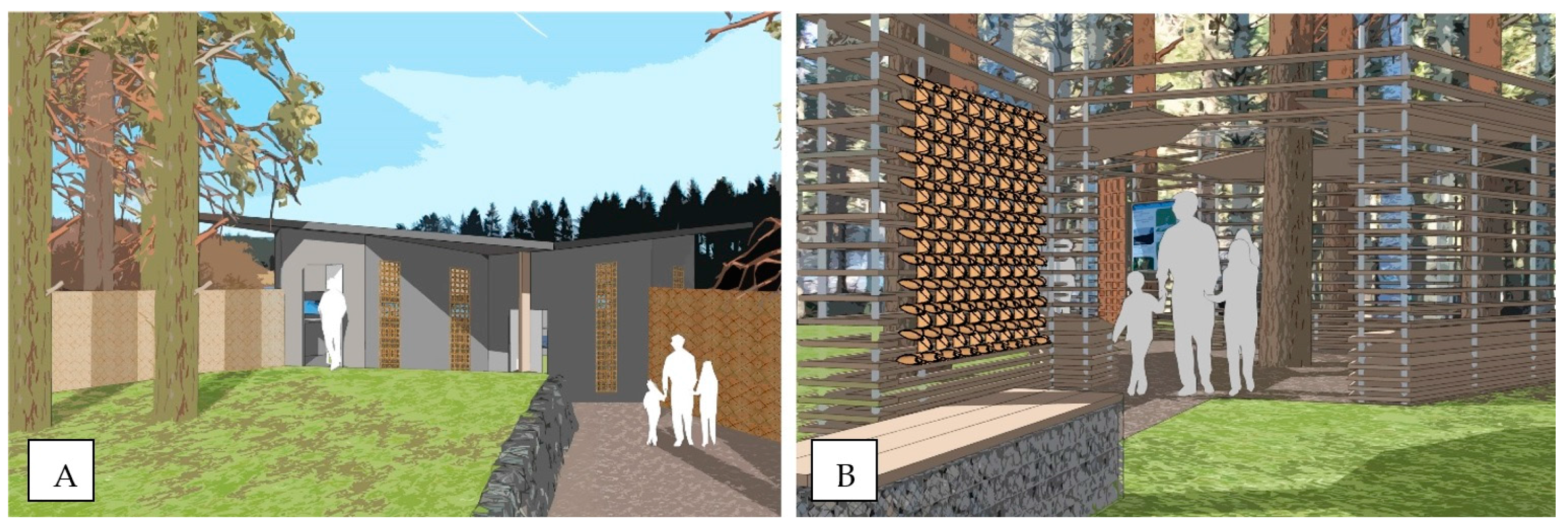 One-year-long outdoor testing of hygromorphic cladding modules and material samples has been conducted to explore the durability of the composites in full weathering conditions, test their response speed to natural weather patterns and evaluate the performance of the developed panel arrangements. Long-term field tests have been chosen over accelerated cyclic lab tests due to the inability of artificially recreating the simultaneous effects of multiple degradation factors present in the natural outdoor environment, such as precipitation, UV radiation, biological decay, wind and snow loading and mechanical erosion. The responsive cladding modules, shown in