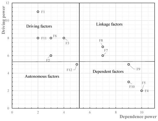 According to their driving and dependence power, the driver power and dependence diagram is constructed as shown in Figure 5.