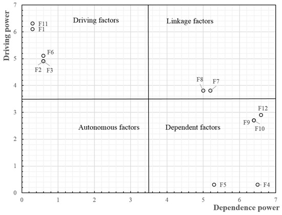 Driving and dependence power using MICMAC (fuzzy cross-impact matrix multiplication applied to classification) analysis.